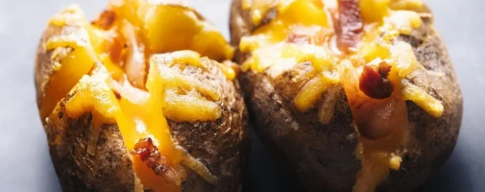 Φωτογραφία: από ανοικτές πηγές Για γεμιστές πατάτες, χρησιμοποιήστε χοιρινό στήθος, κρεμμύδια και τυρί Οι ψητές πατάτες είναι ένα εξαιρετικό χορταστικό